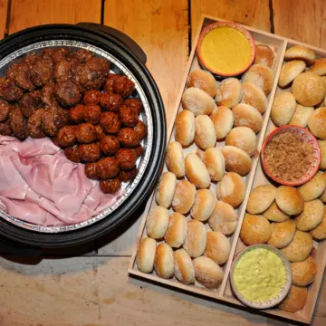 25 mini beenham porties in honing/mosterdsaus met broodjes